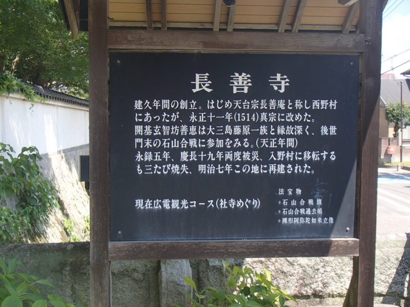 Chōzen-ji Temple, founded during the Kenkyū era (1190–1199), was originally located in Nishino Village, Kamo District (now Sōtoku, Nishino-chō, Takehara City) and was a Tendai sect temple known as “Ōuchiyama Chōzen-an.”