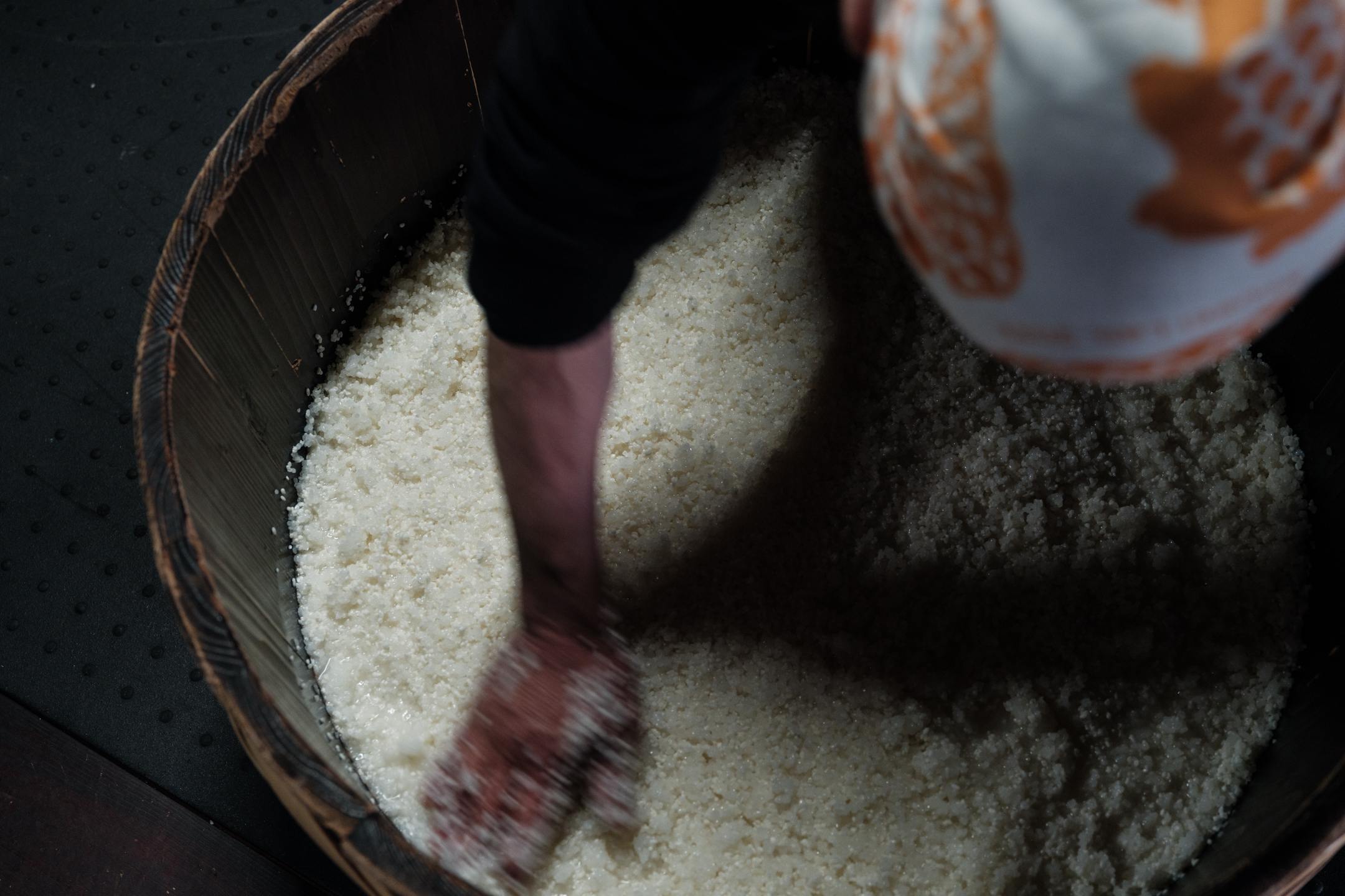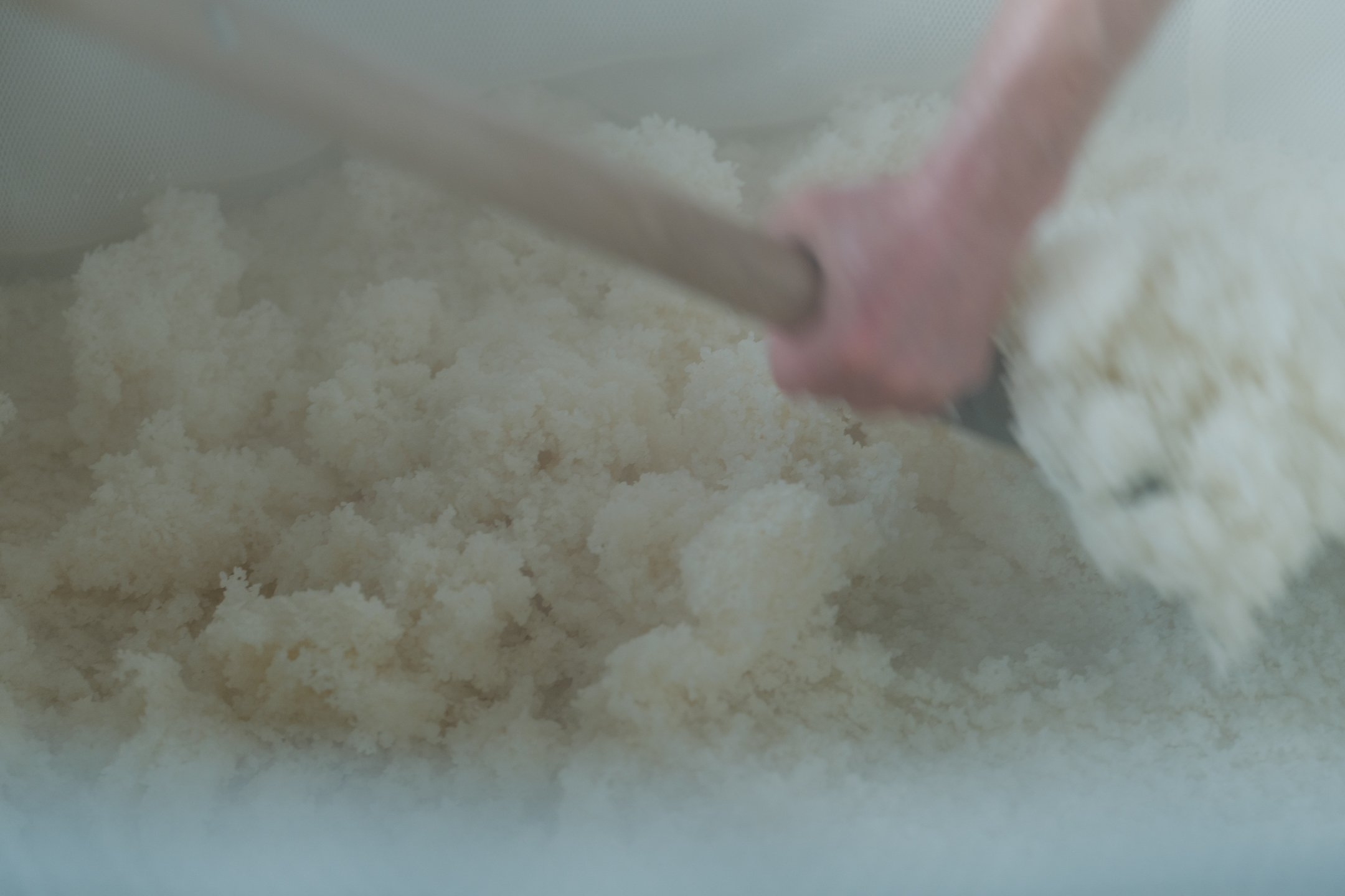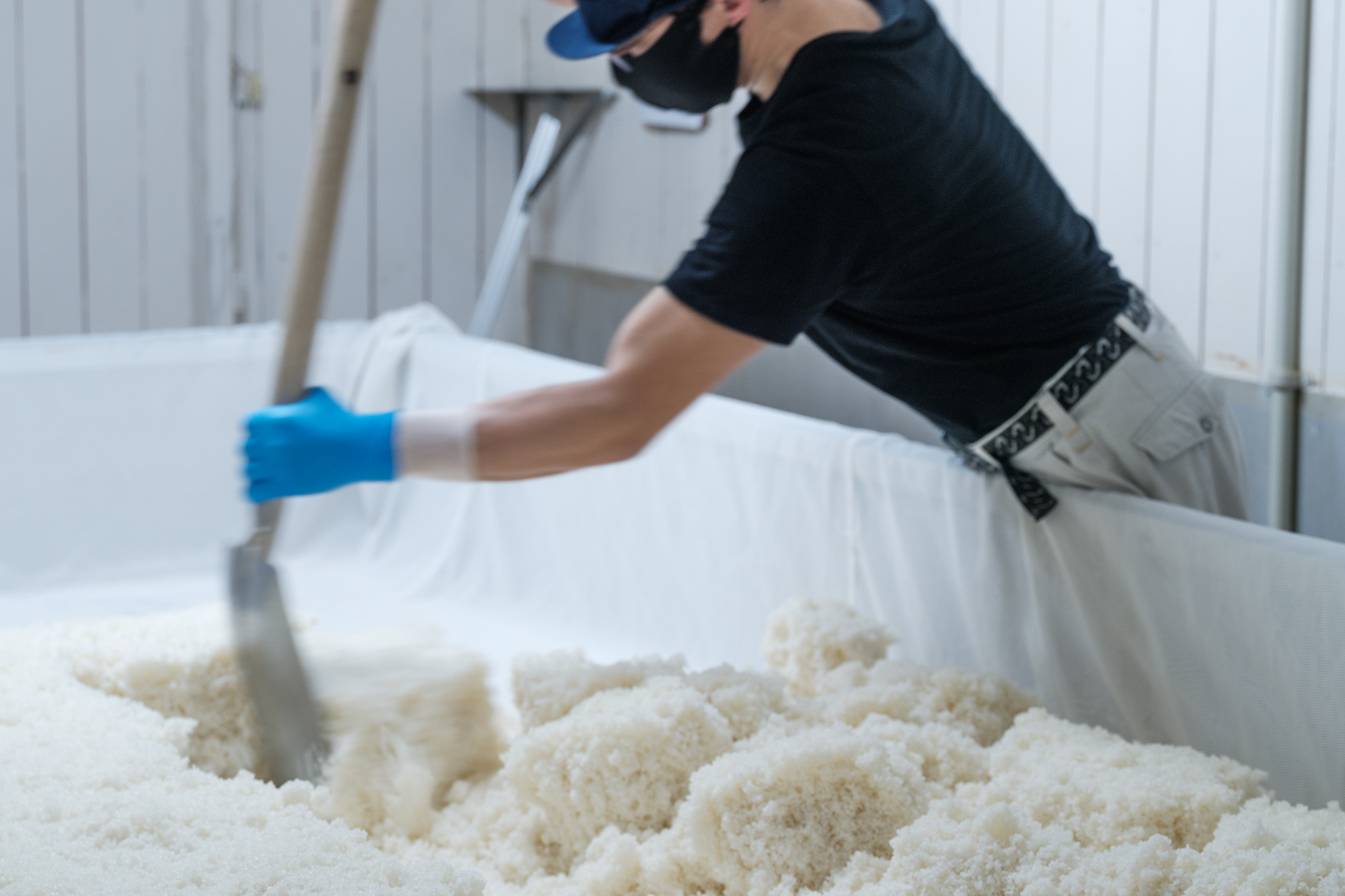Steam rising from steamed sake rice, workers moving their hands mindfully. One might imagine that sake brewing always has a solemn, tense atmosphere… but currently playing in the brewery is the theme song for the anime “Gatchaman.” Surprisingly, the workers’ favorite music plays one after another, and everyone moves their hands to the beat. This is based on Fujii’s policy that “while results are important, the process can be fun.” It is a stylish touch that adds a subtle brightness to a workplace involving a lot of physical labor.