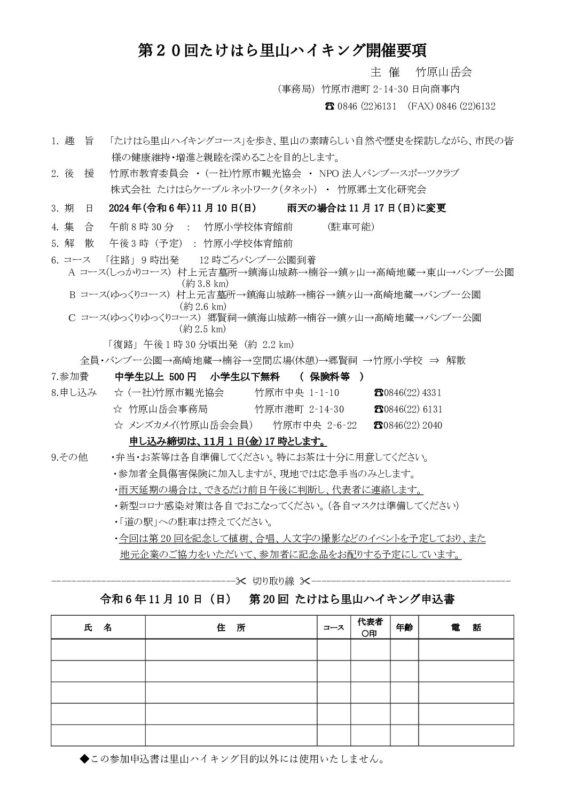 *竹原山岳会事務局 竹原市港町2-14-30 ☎0846-22-6131