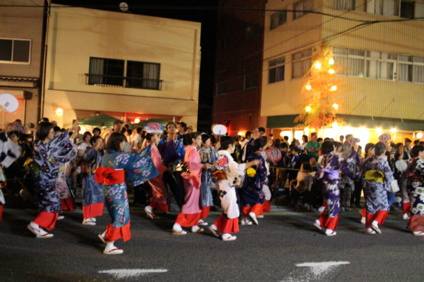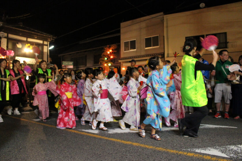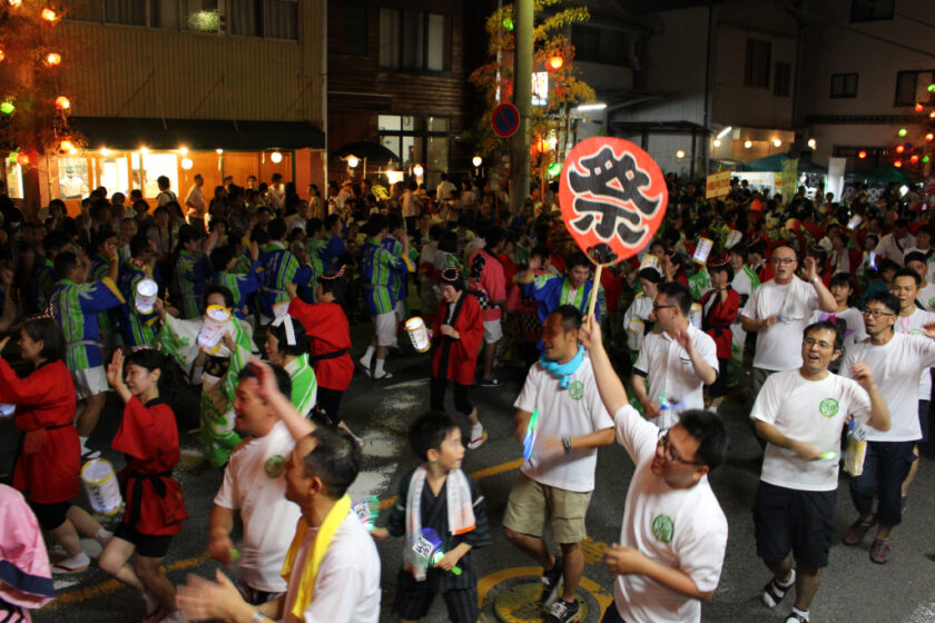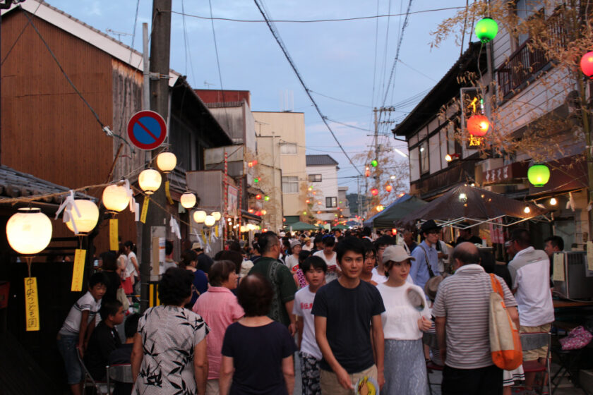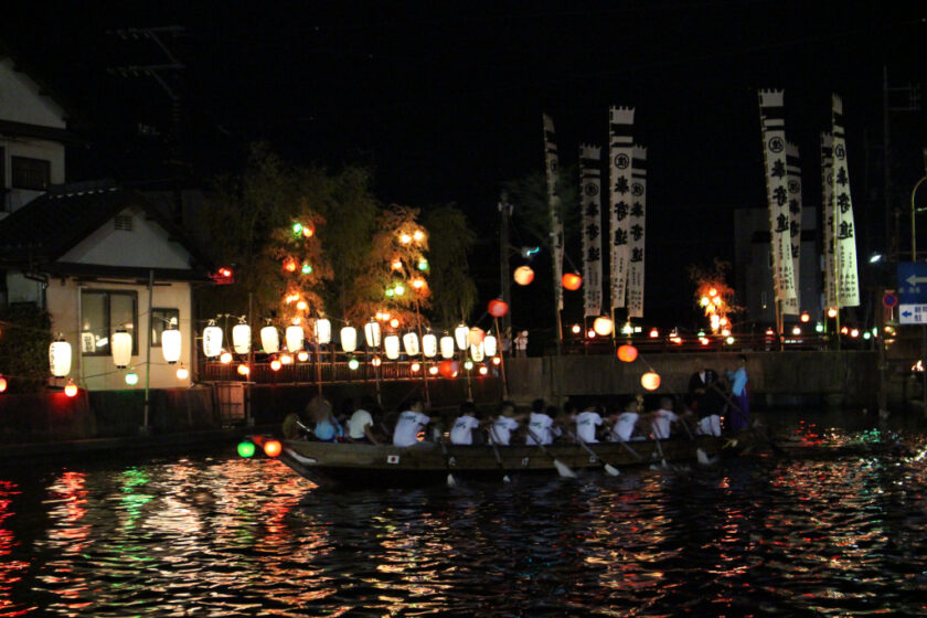 혼카와 강변을 따라 어린이 제등이 늘어서며, 가이덴마(노 젓는 배), 가마 행진(미코시토교), 무대 행사, 복권 판매, 부채 추첨회 등 다채로운 이벤트가 열립니다.