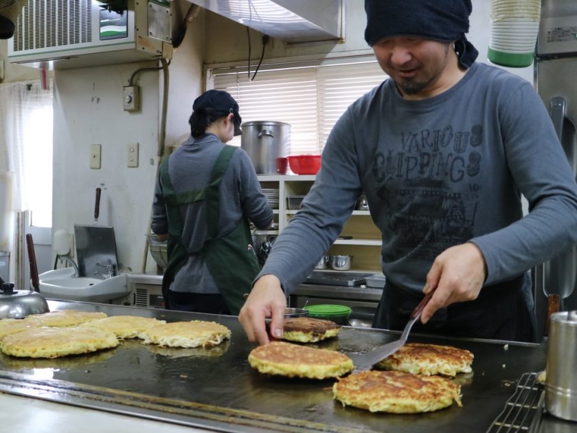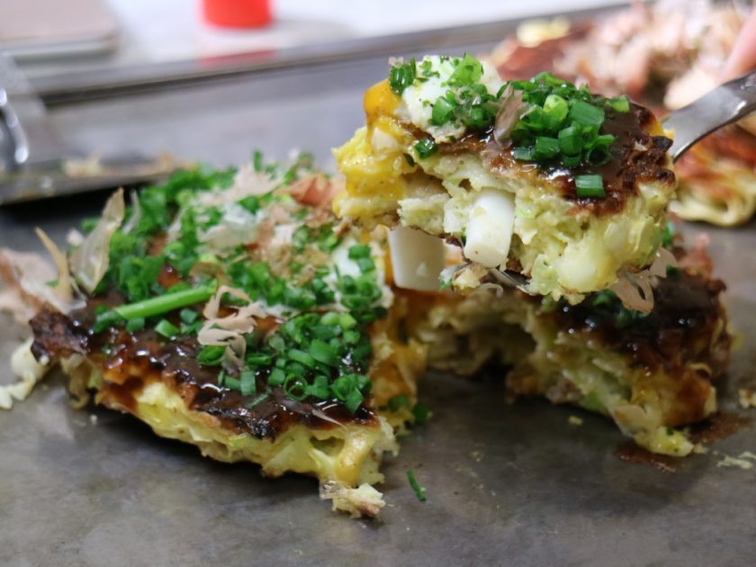‘바삭! 파삭!’한 독특한 식감이 자랑인 오코노미야키입니다.