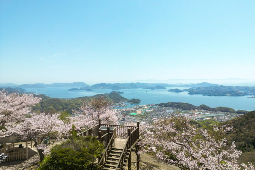 북쪽으로는 히로시마 공항이, 남쪽으로는 세토내해의 섬들이 마치 아름다운 그림처럼 펼쳐집니다.