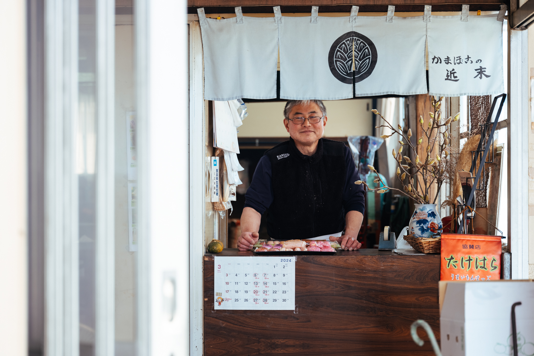 쇼와 7년(1932년) 창업하여 현재는 3대째인 치카수에 마사츠구 씨가 지금까지 변함없는 제조법을 이어오고 있습니다. 보존료를 사용하지 않고 원료인 ‘명태’를 커다란 맷돌로 갈아 어육 반죽을 만든 뒤, 소금, 조미료, 전분을 어묵 종류마다 다른 배합으로 완성합니다. 이른 아침부터 준비를 시작해 10시경에는 갓 튀겨낸 따끈따끈한 어묵을 만날 수도 있습니다. 그럴 때는 용기 내어 말을 걸어보는 것을 추천합니다. ‘갓 만든 것’을 살 수 있는 것은 바로 이 순간뿐입니다. 유채기름에 듬뿍 튀겨낸 어묵은 속이 폭신폭신합니다. 입김을 불어가며 한입 베어 물면 입안 가득 행복이 퍼집니다. 무엇을 튀기고 있을지는 그때그때의 즐거움으로 남겨두세요. 갓 튀긴 어묵을 한 손에 들고 마을을 산책하는 것도 운치 있습니다.
