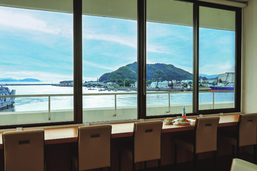 全面ガラス張りの大きな窓から瀬戸内海を一望!