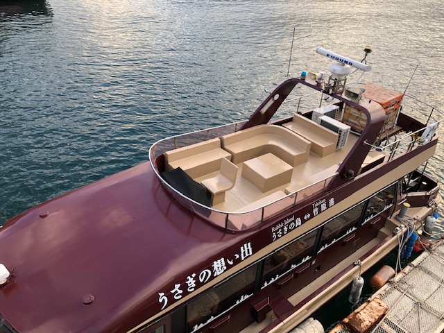 大久野島まで片道25分の船旅が楽しめます。