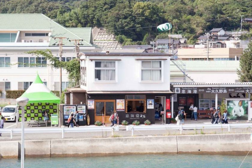 JR三原駅からバスで40分、「大久野島入口」バス亭から忠海港へ徒歩3分