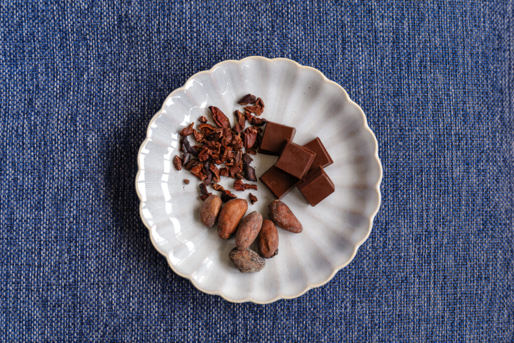 工房に併設するカフェでは、チョコを存分に感じられるショコラドリンク類のほか、ガトーショコラや濃厚チョコプリンなどのスイーツも。どれもチョコレートが甘すぎることなく、濃厚で香り豊かなカカオの風味を存分に感じられます。また、カカオ豆を覆う白い果肉「カカオパルプ」を使ったカカオパルプソーダ(季節限定)や、スーパーフードとしても注目されるカカオニブなど、珍しい商品があるのも工房ならでは。