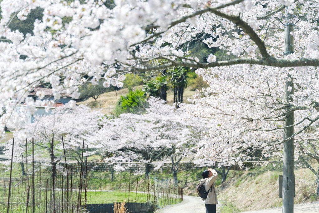 保存会の事務局長である原隆太郎さんに話を伺うと、実はこの桜を植えたのは原さんの先祖なのだそう。「宝泉寺という地域の寺院から苗を譲り受け、畑の片隅に植えたと聞いています」と原さん。かつて段々畑だったこの場所では、大豆や小豆、タバコを栽培していました。仕事の合間に、この桜に癒やされていた人々の光景が目に浮かびます。周囲にはソメイヨシノや河津桜、菜の花などが植えられ、年々華やいでいるようです。