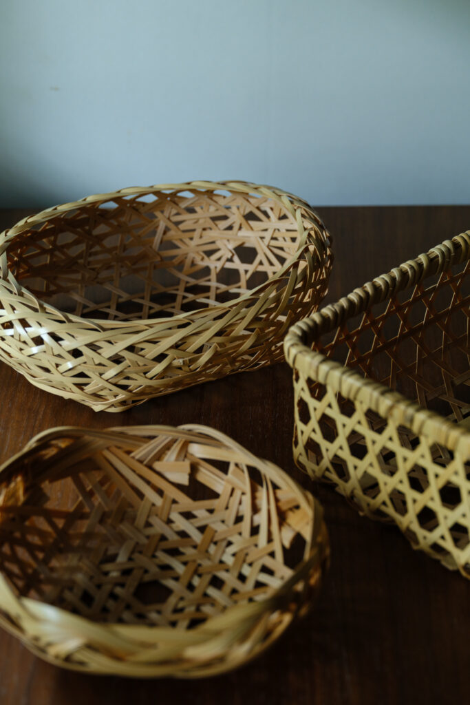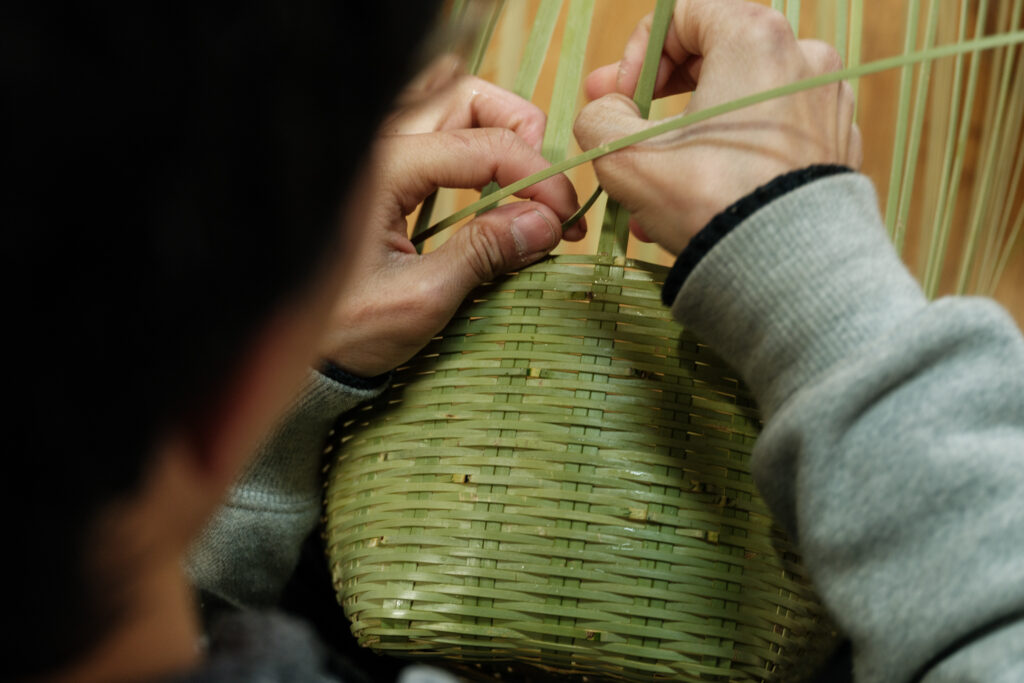 竹のしなやかさや強度を活かした竹細工は美しさと実用性が両立し、現代の生活にも馴染むデザインが多いのが特徴です。竹原では籠やザルのような日用品から、照明器具やバスケットなどのインテリア雑貨など、作り手の個性を積極的に生かした数々の作品が、日々生み出されています。そこには寺本さんのような、竹細工の可能性を求めて竹原を訪れる新たな担い手の存在も欠かせません。一本の竹を割り、編み、形を作る職人の手仕事からは、ものづくりの温かみと奥深さを感じます。竹原で職人の手仕事に触れながら、竹の魅力を感じてみてください。