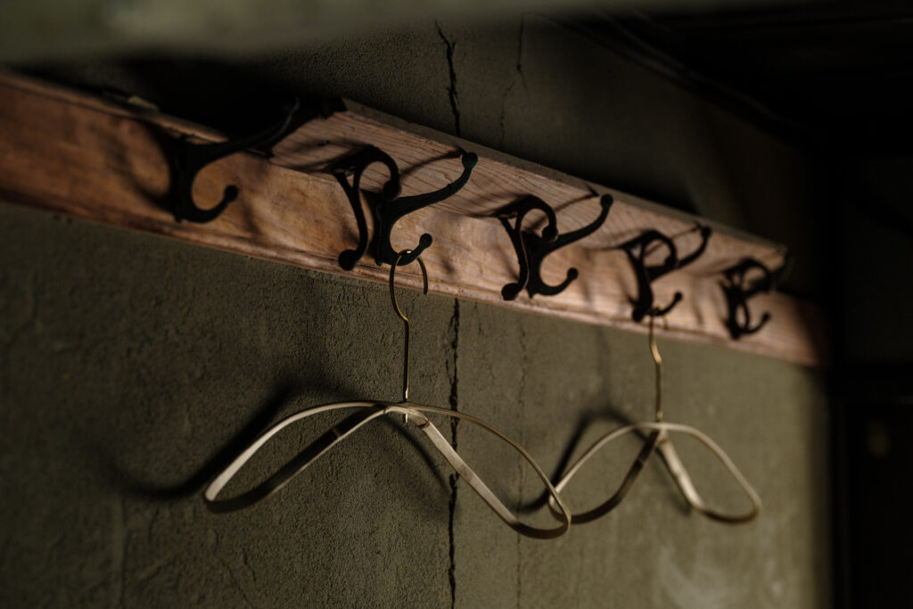 竹ひごをくるり八の字にひねった、モビールのような美しさを放つハンガーは、金属造形作家の辻󠄀陽水さんと共同で手がけたもの。フックに使われている真鍮がアクセントとなり、佇まいに気品を感じます。これまで一人で制作をすることが多かったという寺本さんですが、最近は違う素材との掛け合わせや、異なる分野の職人との交流に関心を向けることで、作品の幅を広げているようです。