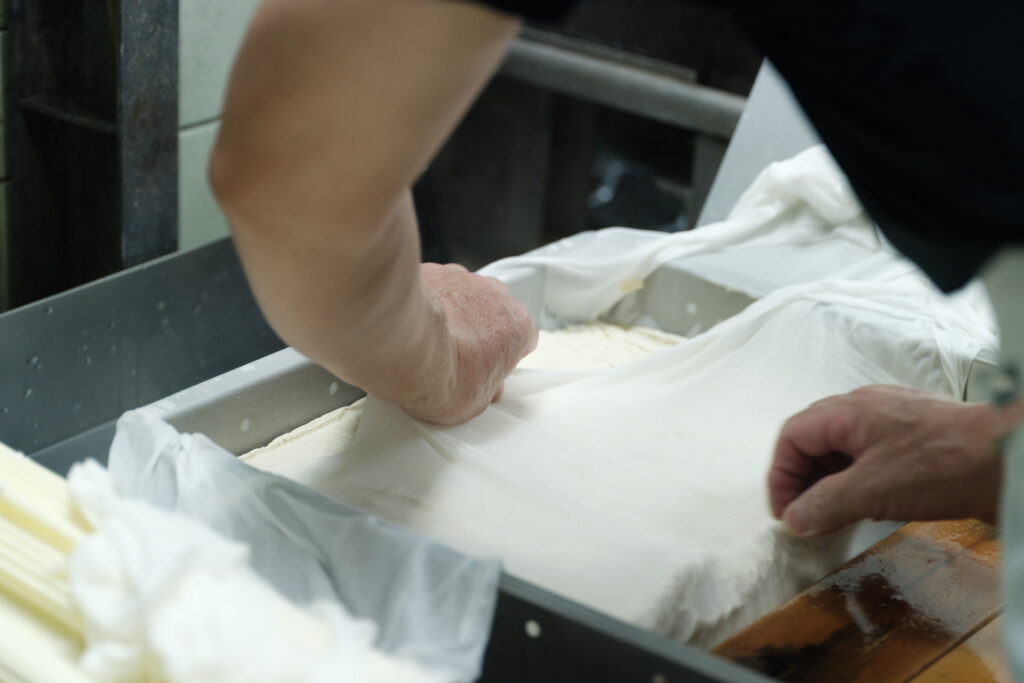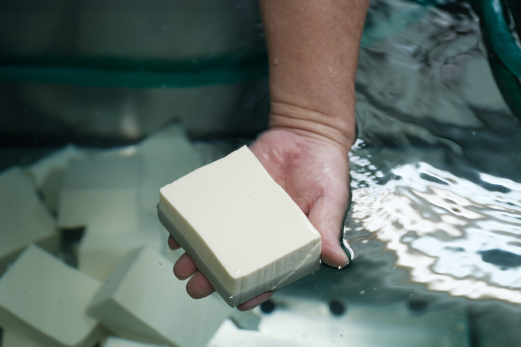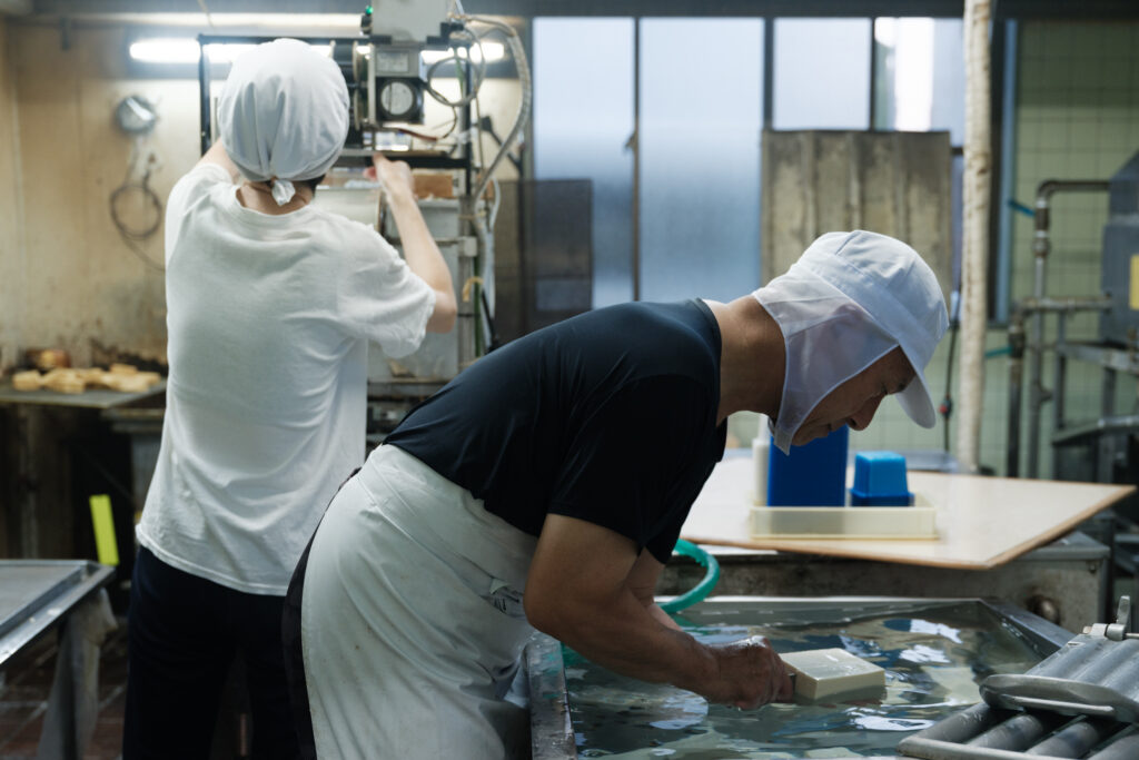 龍蔵さんの豆腐づくりには、真面目さと同時に遊び心も感じます。美味しい豆腐づくりの心得を尋ねると「適度にさぼること!」と冗談混じりに答えてくれる一方、恵美さんによると、旅行先で豆腐を見つけるとつい買って宿泊先で食べ比べてしまうほど。そんな探究心が、毎日の一丁につながります。真剣でありながら、程よく肩の力を抜く。二人の豆腐からは、そんな人柄も伝わってくるようです。