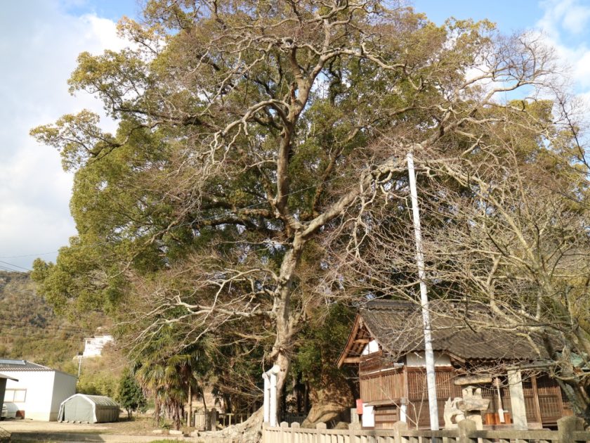 樹高 32 m、胸圍 8.6 m,規模宏大,僅次於糸崎神社的樟樹,為縣內第二大。