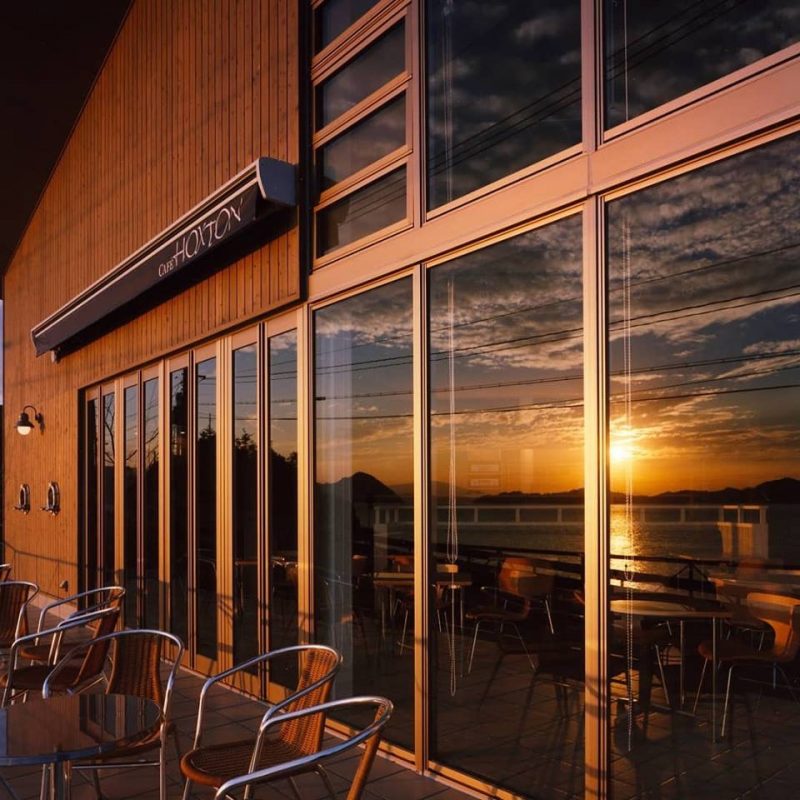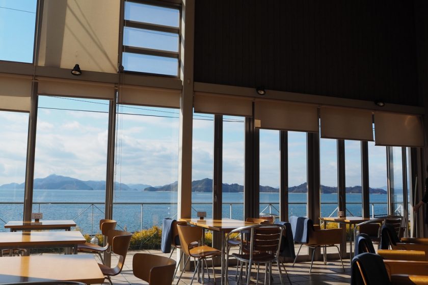 這是一間坐落於絕佳地點、眼前即是寧靜瀨戶內海景致的咖啡館。