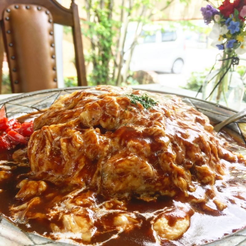 使用自家製講究雞蛋製作的蛋包飯是招牌菜色,搭配多蜜醬汁與濃郁鮮奶油醬的組合堪稱絕品。