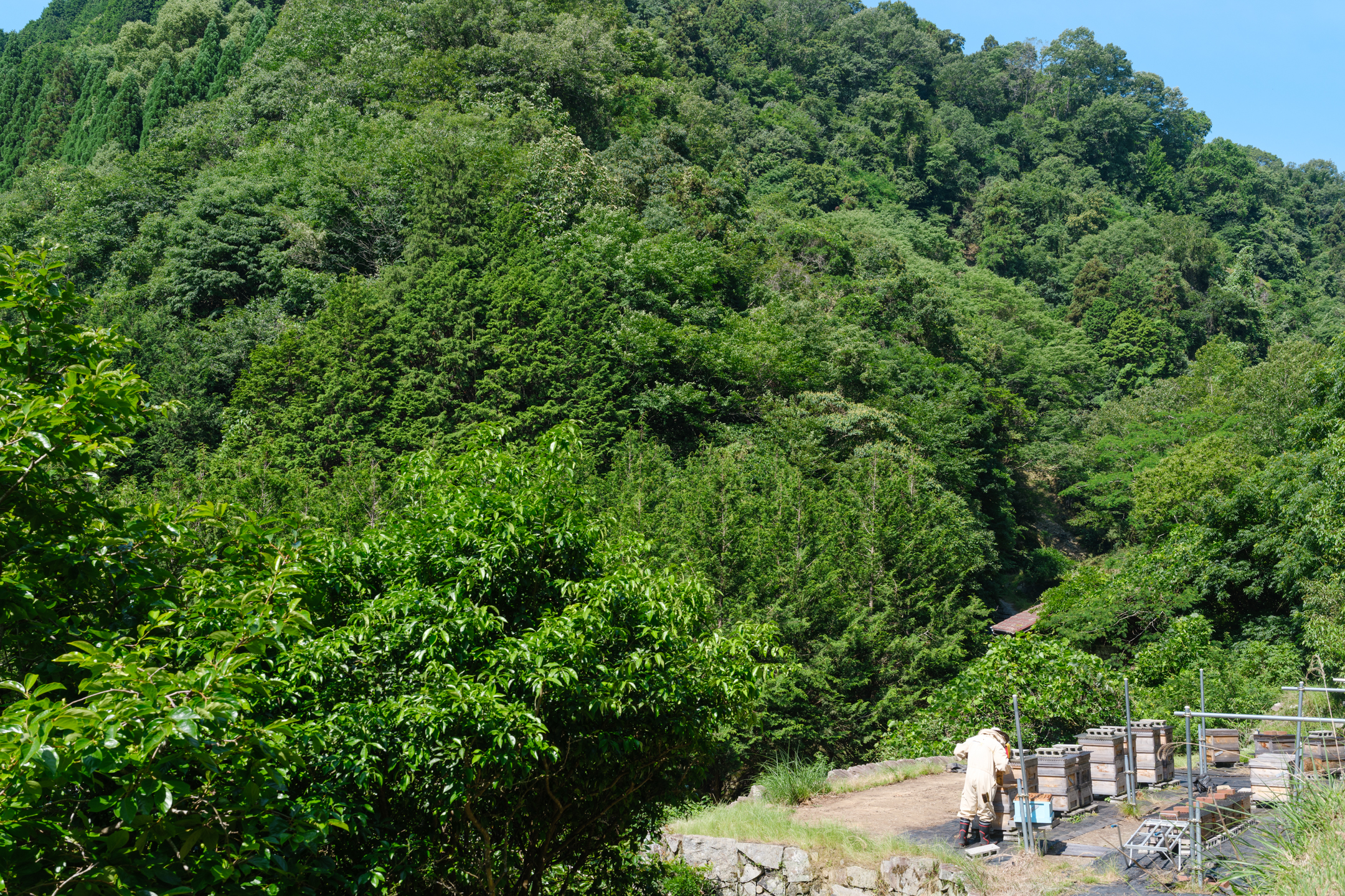 在竹原里山的仁賀町,福島大樹先生自 2016 年起開始從事養蜂業。他表示「我想堅持在爺爺生活過的這個地方」,因此創立以自己名字命名的品牌「FUKUBEE(フクビー)」,提供天然、非加熱的蜂蜜。